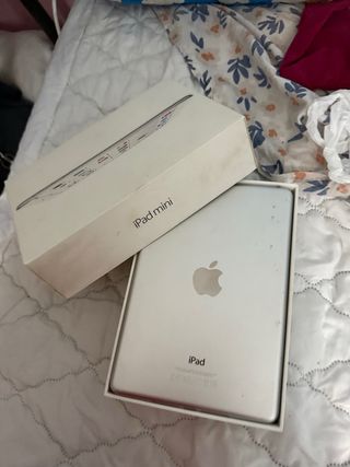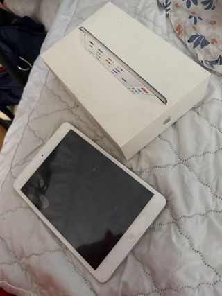 iPad mini blanco en venta. Está en buenas condiciones, aunque presenta algunas señales de uso en la caja. - Incluye la caja original. - Perfecto para reparar o usar piezas.