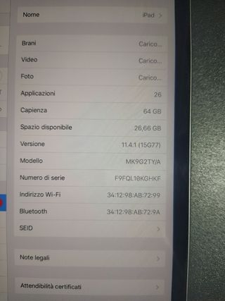 iPad Mini 4 (2015) 4° generación 64Gb WiFi en muy buenas condiciones a pesar de la edad. Funciona perfectamente y no tiene desperfectos. La batería aún aguanta mucho. Modelo A1538. Se entrega con cable y cargador, pero sin caja. Ha sido usado con mucha cura en todos estos años, siempre con su cubierta (que he retirado porque estaba ya muy desgastada). Está en italiano pero se entrega reseteado para que le pongas el idioma que quieras. Precio no negociable.
