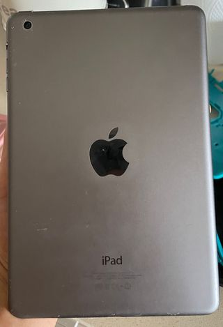 iPad mini de primera generación en color gris oscuro. Está en buen estado y funciona correctamente. Siempre en funda, ni un rasguño ni marca. Bateria perfecta. - Almacenamiento de 32 GB. - Incluye cable de carga. - Se regala funda