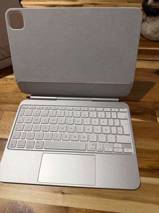 Teclado y trackpad para iPad Pro 11’ M4. Modelo A2975 Teclado alemán, sin tecla Ñ, pero es posible usarlo como teclado español desde ajustes del ipad. - Diseño elegante y funcional. - Teclas retroiluminadas para escribir cómodamente. - Trackpad integrado para una navegación precisa. - Sin cargador ni caja.