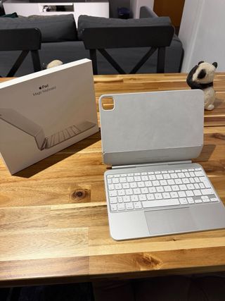 Abierto pero sin estrenar porque no nos sirve porque es del Ipad nuevo y nosotros tenemos el antiguo. Teclado Magic Keyboard para iPad Pro de 11 pulgadas. Diseñado para una experiencia de escritura cómoda y precisa. - Diseño elegante y funcional. - Trackpad integrado para una navegación fluida.