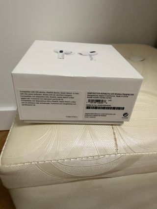 Auriculares inalámbricos Apple AirPods Pro con estuche de carga. - Modelo MWP22TY/A. - Diseñados en California, fabricados en China. - Compatibles con dispositivos iOS, iPadOS, Apple Watch y Mac. - Funcionan con cargadores certificados Qi.