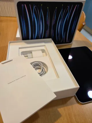 Ipad Pro 12´9 “ 6ª Generacion de 256Gb color Space Gray en impecable estado.Comprado nuevo en Appel Xanadu.Testeado en Appel con informe excelente,bateria al 95% de capacidad ,poco uso,practicamente nuevo.Regalo de Septiembre 2023.Cable y cargador.Regalo funda.NO CAMBIOS.NO ES REACONDICIONADO.NO OFERTAS ABSURDAS
