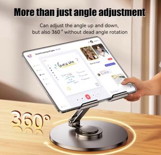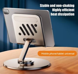 Soporte giratorio para iPad Pro, compatible con teléfonos y tablets. - Diseño estable y sin vibraciones. - Material de aluminio con alta disipación de calor. - Base redonda y ajustable.