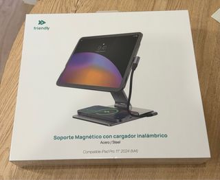 Diseñado para convertir tu iPad en una estación de trabajo completa. El Soporte Magnético con Hub para iPad Pro 11" de Friendly ofrece estabilidad y estilo con un acabado premium en aluminio. Un accesorio elegante y práctico perfecto para trabajar, estudiar o disfrutar de contenido multimedia con total comodidad. Conexiones de alto rendimiento Equipado con tres puertos USB 3.0 de alta velocidad, un puerto HDMI 4K, ranuras para tarjetas SD/TF y un puerto USB-C con carga rápida de hasta 60 W. Te ofrece todo lo que necesitas para conectar accesorios, pantallas y gestionar tu trabajo sin limitaciones. Carga inalámbrica integrada Incluye un cargador inalámbrico de hasta 15 W, perfecto para cargar tu iPhone, AirPods u otros dispositivos sin cables adicionales. Compatibilidad con iPad Pro 11" Diseñado específicamente para iPad Pro de 11”, incluye un cable USB-C a USB-C de 27 cm que garantiza una conexión rápida y estable. Diseño minimalista en aluminio Su estructura en aluminio aporta resistencia y un estilo premium, con un acabado elegante que encaja perfectamente en cualquier entorno de trabajo. Entrega en mano!!!!