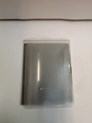 Smart Cover para iPad Pro de 12,9 pulgadas en perfecto estado. El diseño es igual al estilo clásico de Apple, con tapa plegable en tres partes y carcasa trasera rígida, pero no es un accesorio original de Apple, aunque encaja con absoluta precisión en el iPad para el que está diseñada. La funda protege tanto la parte trasera como la pantalla, con un interior suave que evita arañazos. El sistema plegable permite usarla como soporte para ver vídeos, escribir o realizar videollamadas cómodamente. Las manzanas que ves son pegatinas decorativas, no representan originalidad del producto.