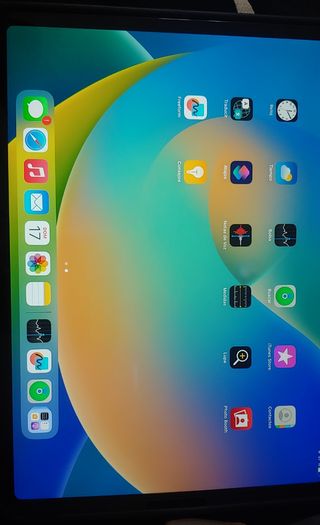 Ipad 11 Pro con IpadOS 16. 64 GB.A Appme A12X Bionic. Pantalla Liquid Retina. Funciona todo perfectamente salvo el Face ID y la cámara frontal. Tiene dos rayas en la pantalla que se ven con fondo oscuro. No molestan. El Ipad fue pisado y por eso lo pongo a este precio. Se puede trabajar con él sin problemas. Incluye funda y cargador. Se venden por más de 700 € de segunda mano. 900 € nuevo.