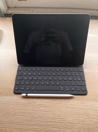 Apple iPad Air 3ª generación: En perfecto estado. No presenta ningún defecto. Capacidad de almacenamiento: 64 GB. Conectividad: Wi-Fi. Incluye cable de carga. No incluye adaptador de corriente. Se puede usar cualquier adaptador USB estándar. Apple Smart Keyboard para iPad Pro 10.5”: Ligeramente desgastado por los bordes por el uso, sin afectar al funcionamiento. Compatible con este modelo de iPad Air y con iPad Pro 10.5”. Apple Pencil (1ª generación): En perfecto estado. Compatible con este modelo de iPad y con iPad Pro. Incluye adaptador de carga y punta de recambio originales. Embalaje originales.