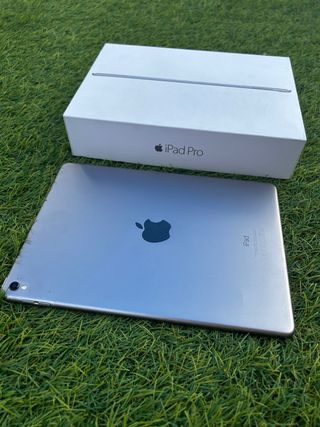 Tablet iPad Pro de 9.7 pulgadas en color plata. Pantalla en perfecto estado. Incluye funda, caja y cargador. La bateria ya se encuentra en peor estado y la bateria dura poco. - Pantalla Retina. - Potente chip A9X. - Cámara iSight de 12 MP. - Diseño ligero y delgado.