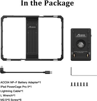 El Accsoon iPad PowerCage II te permite utilizar tu iPad como monitor durante tus producciones de vídeo. La PowerCage presenta un diseño robusto pero ligero én es ajustable para un uso versátil. Además, la jaula cuenta con múltiples puntos de montaje de 1/4"-20 para fijarla alrededor de un soporte de luz o una cámara, una zapata para fijar un micrófono y puntos de montaje universales para fijar empuñaduras. Características de la jaula Accsoon iPad PowerCage II Jaula para iPad Compatible con: iPad – Gen 5, 6, 7, 8, 9 - Adaptador de batería ACC04 NP-F - Jaula para iPad PowerCage Pro II - Cable Lightning - Llave L