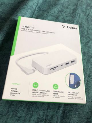 Belkin adaptador usb multiplicador de salidas desde usb tipo c y entrada de ethernet para tener internet por cable . Para más detalles mirar las fotos. Esta precintado totalmente nuevo. Dispongo 3 unidades, precio 20 euros por unidad. Pensado para MacBook IMac y iPad con conector usb tipo C pero válido para más dispositivos, como portátiles sobremesa etc. Seriedad