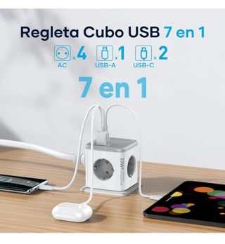 Cubo regleta enchufe 7 en 1.