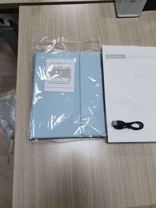 Nuevo a estrenar 5 y 4 Generación 10,9 pulgadas Teclado touchpad desmontable ( Qwerty español) Bluetooth Con ranura para lápiz ( no incluido) Incluye cable USB Color : Celeste