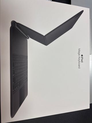 Teclado Mágico de Apple para iPad en color gris espacial. Diseñado para una experiencia de escritura cómoda y precisa. - Diseño elegante y funcional. - Compatible con iPad. Está en su caja tal cual venía.