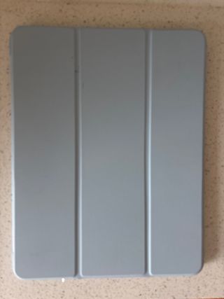 Vendo iPad + Funda protectora para iPad Air de 5ª generación en color gris. Diseñada para un ajuste seguro y elegante. - Material exterior de tela texturizada. - Cierre con solapa magnética. - Diseño delgado y ligero.