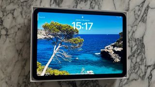 iPad Air de 5ª generación en color gris espacial. - Pantalla de 11 pulgadas. - Diseño elegante y moderno. - Usado solo para estudiar. - Cristal templado instalado.