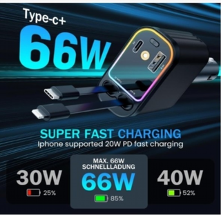Cuenta con un diseño giratorio de 180 grados para ángulos de visión óptimos, lo que mejora la comodidad durante los desplazamientos diarios o los viajes por carretera. Presenta un diseño de cable retráctil de 2 que se extiende hasta 80 cm, se retrae cuidadosamente para un almacenamiento ordenado y fácil acceso. Equipados con 2 cables retráctiles y puertos duales (USB-C y USB-A), que permiten una carga rápida simultánea para hasta 4 dispositivos. Diseñado para una compatibilidad con vehículos amplios, este cargador admite protocolos de carga rápida para iPhone, iPad, dispositivos Android y más.