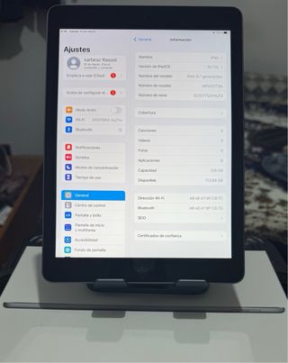 iPad de 5ª generación en color gris con 128 GB de capacidad y conexión Wi-Fi. Tiket de compra En muy buen estado. - Modelo: iPad (5.ª generación) - Capacidad: 128 GB - Conectividad: Wi-Fi - Color: Gris - Versión iPadOS: 16.7.15
