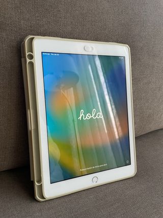 Tablet Apple iPad de 5ta generación en color plata. Un dispositivo versátil y fácil de usar. Está completamente nuevo, a excepción de las pequeñas marcas superficiales laterales que aparecen en la foto n7. - Precio no negociable. - Modelo : MP2G2FD/A - Funciona todo perfectamente, incuido el Touch ID. - Conexión Wi-Fi. - Funda protectora de regalo.