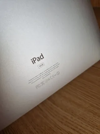 iPad de 16GB en color blanco. Está en buenas condiciones, con algunas señales normales de uso. - Incluye cargador. - Modelo iPad de Apple.