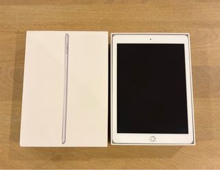Tablet iPad de sexta generación con 128 GB de almacenamiento. Caja y cargador original incluido. Estado impecable. - Color plata. - Pantalla retina de 9.7 pulgadas. - Chip A10 Fusion. - Cámara trasera de 8 MP. - Cámara frontal FaceTime HD.