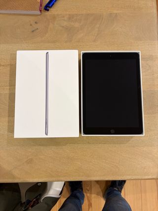 iPad de Apple con 32GB de almacenamiento. - Color gris espacial y plateado. iPad color gris / plata con caja El iPad el tanto la pantalla como el iPad en si está en perfecto estado no tiene ninguna marca . Lo único que hay que usar cascos inalámbricos