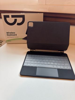 Funda con teclado inalámbrico para iPad, con función magnética. - Diseño elegante en color negro. - Teclado con teclas retroiluminadas. - Trackpad integrado para mayor comodidad.