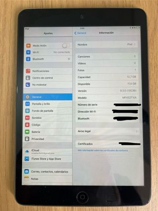 iPad Mini WiFi : Mod. A1432 Capacidad: 16GB sistema iOS: 9.3.5 Buen estado No se incluye cargador, ni caja Modelo: Primera generación