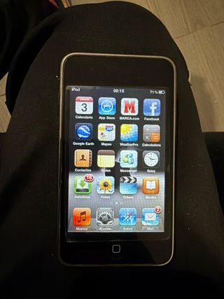 iPod Touch de primera generación con 32GB de almacenamiento. Se incluye la caja original y los manuales. Fisicamente sin golpes ni arañazos en la pantalla y muy buen estado por detras. No tengo cargador y no se estado de la bateria. Se vende tal cual se ve. El mas rapido se lo lleva 😅 Conserva las pegatinas de apple originales de la manzana, un classico!! - Capacidad: 32GB - Incluye caja original - Incluye manuales originales