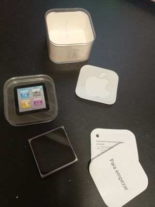 Reproductor de música iPod Nano de Apple 16 Gb. Incluye el iPod en su caja con cargador original. Ninguna mancha, golpe ni daño físico apreciable. Muy poco uso y llevo años sin utilizarlo, lo he cargado y funciona bien. - Diseño compacto y ligero. - Pantalla a color. - Botón de control circular.