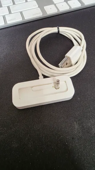 Base de carga para iPod Shuffle de 2ª generación de Apple. Está en buen estado y lista para usar. La segunda foto es para que se vea el modelo al que corresponde. Repito..Solo se vende la base de carga (Foto principal) - Incluye cable USB. - Diseño compacto y elegante.