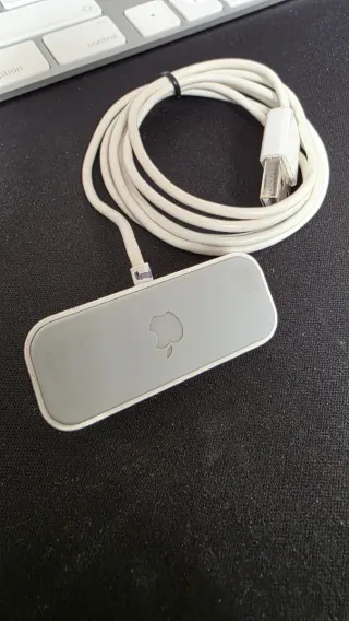 Vendo base de carga para iPod Shuffle de Apple. Está en buen estado. - Incluye el adaptador de corriente y el cable. - Perfecto para cargar tu iPod Shuffle.