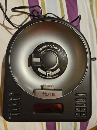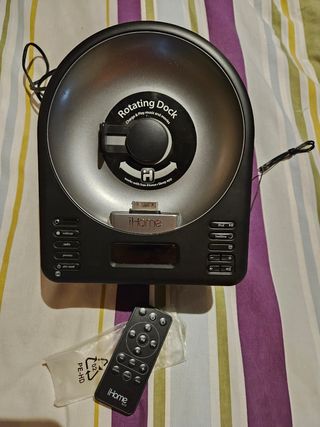 El iA63 es un reloj despertador con radio FM de Última generación para iPhone y iPod touch. Con una base giratoria, este sistema de ahorro de espacio ofrece una experiencia de audio excepcional y es perfecto para ver tus peliculas o musica favorita. En buenas condiciones. Viene con mando a distancia. Poco uso. conexión Apple 30 pines se puede adaptar conexión convertidor