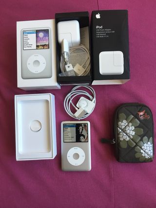 ipod classic 160GB negro, modelo A1238 (finales 2009). Incluye caja, guía, auriculares y cable USB. Todo original. Nunca fue arreglado. Me lo regalaron en el 2009 y sólo lo he usado yo. Siempre ha estado en la funda rosa que aparece en las fotos. Funciona correctamente. La batería sigue durando horas (comprobado 18 horas seguidas) y estéticamente está muy cuidado con alguna señal de uso por la parte trasera. NO ACEPTO CAMBIOS NI DEVOLUCIONES en este producto para evitar fraudes.
