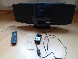 Elegante microcadena Philips DCM292 Lector de Cd Puerto USB Radio Reproductor y cargador Ipod y Iphone Puede colgarse de la pared. Incluye mando a distancia En muy buen estado. Solamente la puerta de cds se abre a veces sola. Hay que arreglarla.