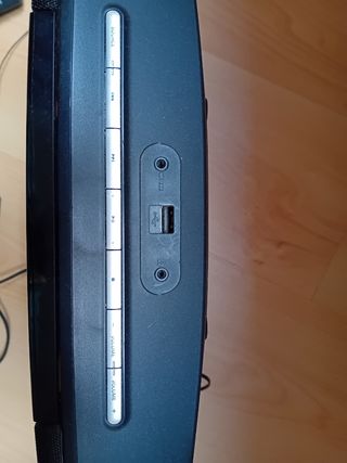 Altavoz para ipod o mp3. Sin estrenar con su embalaje original e instrucciones. Utiliza 4 pilas tipo AAA. Posibilidad de utilizar un adaptador CA (6V no incluido).