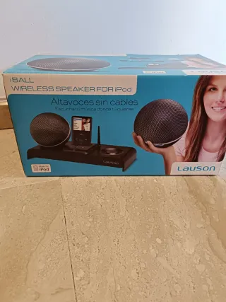 Altavoces inalámbricos negros para iPod. - Diseño esférico. - Base con conexión para iPod. - Incluye mando a distancia.