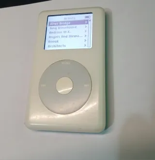 iPod Classic de 30GB en color negro. Ideal para piezas o para quien quiera restaurarlo. - Pantalla con menú visible. - No dunciona rueda de control y botones funcionales. - De un lado esta ligeramente abiero. - Bateria original - Disco duro original No se entrega cable, tal como en la foto. Carcasa esterna tiene desgaste, tapa trasera tambien.