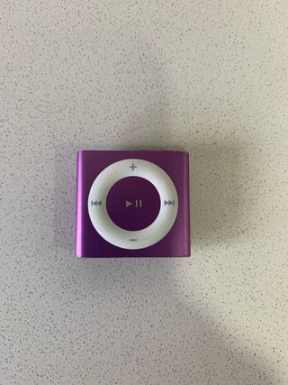 Reproductor de música compacto y portátil. - Diseño en color morado. - Interfaz de control circular.