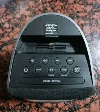 Radio despertador y altavoz Logitech. Cuenta con entrada para antiguos iPhone/iPod con dock de 30 pines. Tiene entrada Jack. Muy buen sonido.
