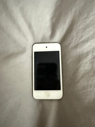 Reproductor de música iPod de Apple en color blanco. - Diseño compacto y ligero. - Pantalla nítida para una visualización clara. - Botón de inicio circular.