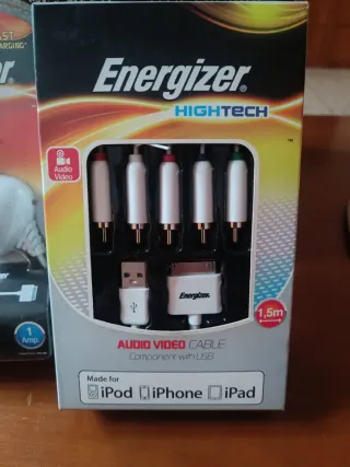 Cargador para coche Energizer con cable de 1.20m. - Compatible con iPhone y iPod. - Carga rápida. - 1 Amp.