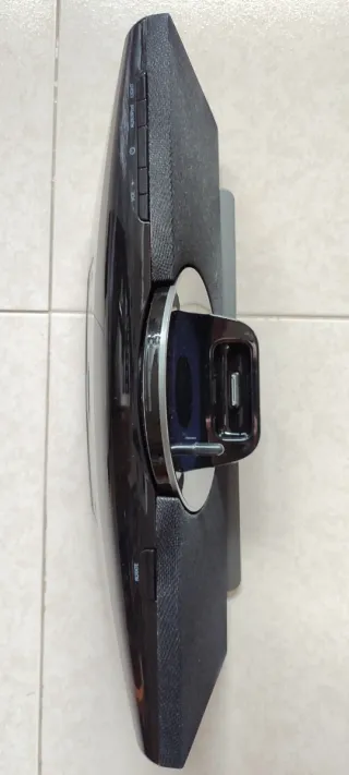 Altavoz compatible con iPod y iPhone. - Diseño elegante en color negro y gris. - Base integrada para el dispositivo. - En su caja original - Nunca se ha usado - Mando a distancia - Ver listado dispositivos compatibles en la foto, pero se puede conectar cualquier equipo por la entrada auxiliar de minijack