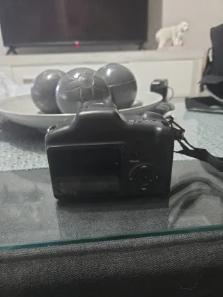 Cámara digital compacta en color negro. - Pantalla LCD. - Botones de control.