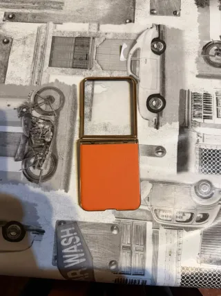 Funda móvil naranja y dorada