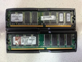 Se venden dos módulos de memoria RAM DDR1 Kingston. - Modelo: KVR400X64C3A/512 - Capacidad: 512MB cada uno - Voltaje: 2.6V - Fabricante: Kingston - Origen: Ensamblado en China y USA