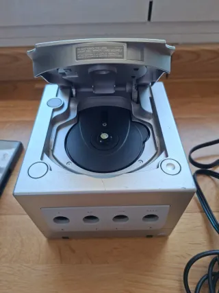 Consola Nintendo GameCube en color gris, con mando inalambrico y accesorios. - Incluye el juego FIFA Football 2004. - Incluye Memory Card de 251 y 59 bloques - Incluye manual de instrucciones. - Incluye cables de conexión y adaptador de corriente. Todo es original y funciona correctamente.