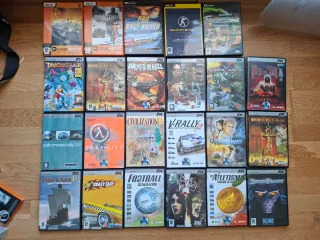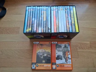 23 Juegos de ordenador. La mayoría son de la colección Fx del mundo, van en 2 cajas para guárdalos - Atletismo: edición oro. - Civilization II. - World war II: battle of britain. - The house of the dead. - The house of the dead 2. - V-Rally 2. - Imperivm: La Guerra de las Galias (×2). - Runaway: a Road Adventure. - Enemy Engaged: Apache vs. Havoc. - Crazy taxi. - StarCraf. - The longest Journey. - Half-life. - Football Generation. - Dragon's Lair. - Need for speed: undercover. - Need for speed: underground 2. - Patrician 2. - Battlefield: bad company 2. - Colin McRae Rally 2.0. - Pro race driver. - Counter-strike 1: