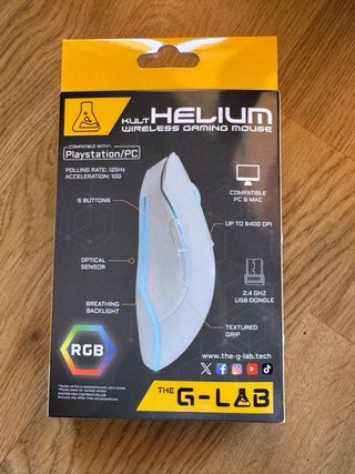Ratón inalámbrico Kult Helium, compatible con PlayStation y PC. Cuenta con iluminación RGB y un diseño ergonómico. - Hasta 6400 DPI - Recargable - 7 colores de iluminación - Baja latencia