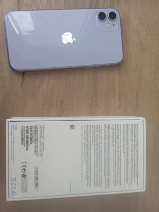 Teléfono móvil iPhone 11 en color púrpura, con su caja original y cable de carga. También tiene 10 fundas y 5 salvapantallas, en muy buen estado. - Modelo: iPhone 11 - Color: Púrpura - Incluye caja original - Incluye cable de carga